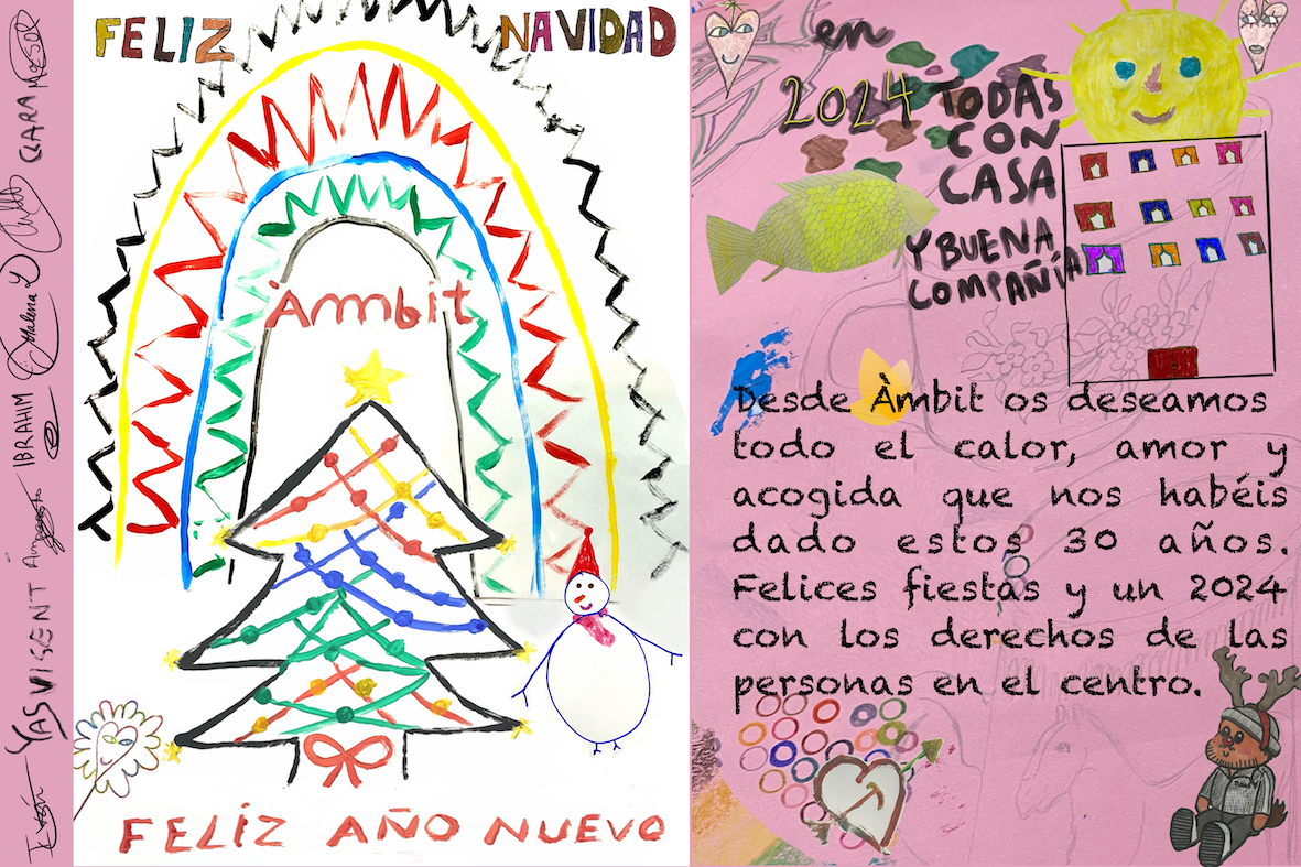 Llego 19 días tarde a la felicitación de 2024, pero es que este año ha empezado cargado. Por lo pronto, esta es la felicitación hecha por el grupo de Arteterapia que dirijo en Associació Àmbit con personas en reinserción social, con quienes tenemos previsto seguir todo este año (además, continuaremos con los programas que hemos establecido en la asociación en las prisiones de Picassent, Castelló y Albocasser).