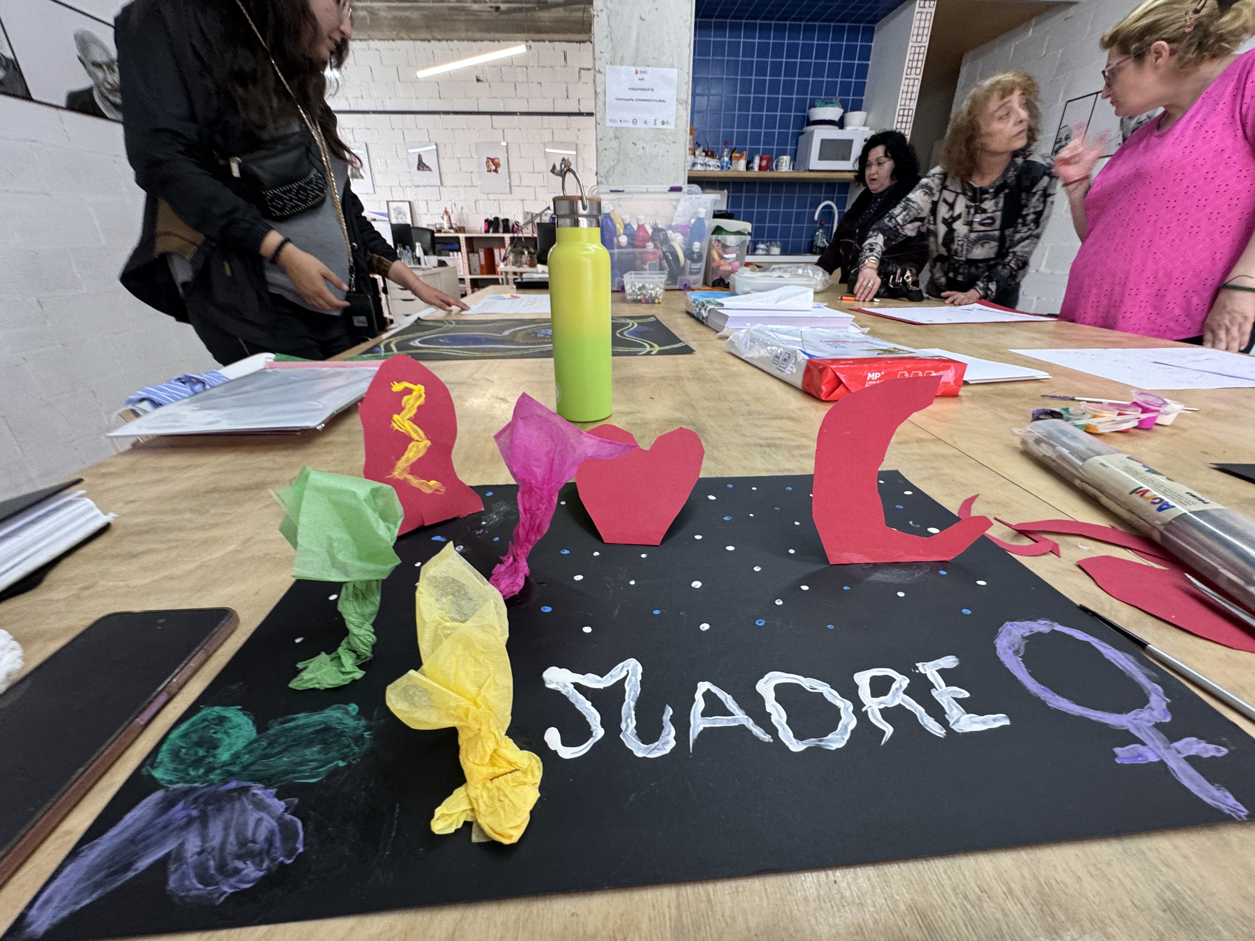 Una vez se ha superado el vacío y la obra es visible y tangible, ésta sigue creciendo: su materialidad facilita que podamos verbalizar en torno a ella los conceptos y sensaciones que sugiere: el grupo recibe la obra y vibra con ella, y comparte significados que pueden venir a completar el inicial de la artista: los grupos de arteterapia que hemos ido creando en Àmbit, ya sea en nuestras oficinas-taller en la ciudad o en las prisiones de la Comunitat Valenciana, son además lo suficientemente fuertes y creativos para soportar las narraciones que las obras propician o son en sí mismas, para sujetar y acompañar a cada una de las participantes. Bravas. (Enlace a la web de Àmbit, donde podéis colaborar con su labor: https://associacioambit.org)