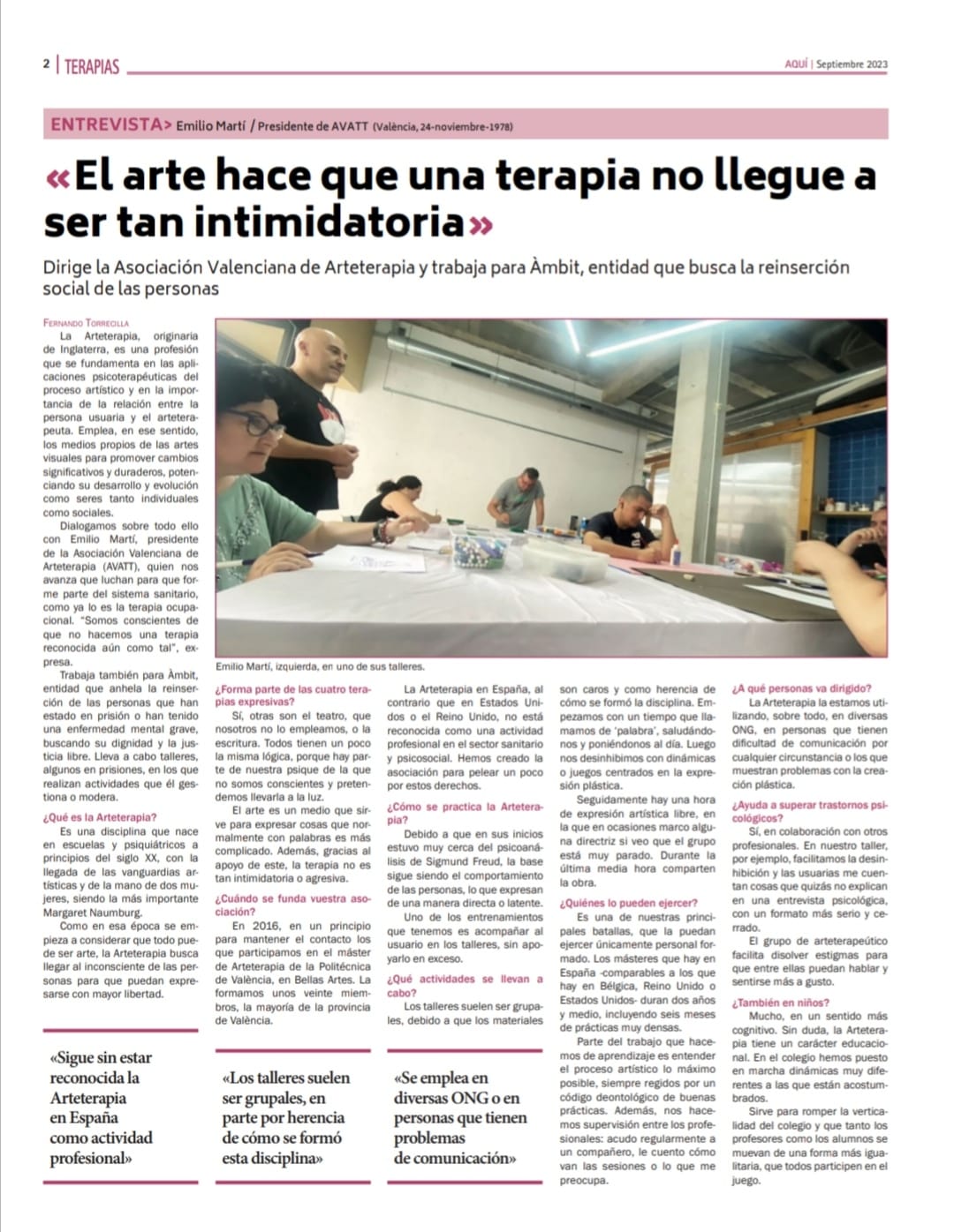 Ayer volvimos a nuestros talleres de arteterapia en @associacioambit, donde trabajamos por la reinserción social y la dignidad de muchas personas, y coincidió con la publicación con esta entrevista sobre el #arteterapia: hay alguna cosa que la entrevista enreda, que no recoge bien (o incluso al revés de como debe) pero está bien que se hagan eco en los medios sobre nuestro esfuerzo porque el Arteterapia sea una disciplina profesional reconocida oficialmente y que, junto a las profesionales de la salud psicosocial y sanitaria en quienes habitualmente nos apoyamos, encuentre su espacio como acompañamiento y mejora en lugares de salud y educación. El arte, usado por arteterapeutas bien formadas y con un fuerte compromiso ético y profesional, ayuda a que las personas se entiendan mejor a sí mismas, encuentren lugares comunes para socializar, y aprendan que tienen en sí mismas un pozo de creatividad y belleza al que acudir a lo largo de su vida. Gracias a Àmbit por creer en esta disciplina, y por incluirnos entre las herramientas que usan para facilitar que personas en riesgo de exclusión social o en prisión (ya estamos en 3 de las prisiones valencianas), tengan acceso a este medio de investigación personal, comunicación intra e interpersonal, y que facilita asumir riesgos, probar y corregir, en un entorno seguro (y a menudo, lúdico).