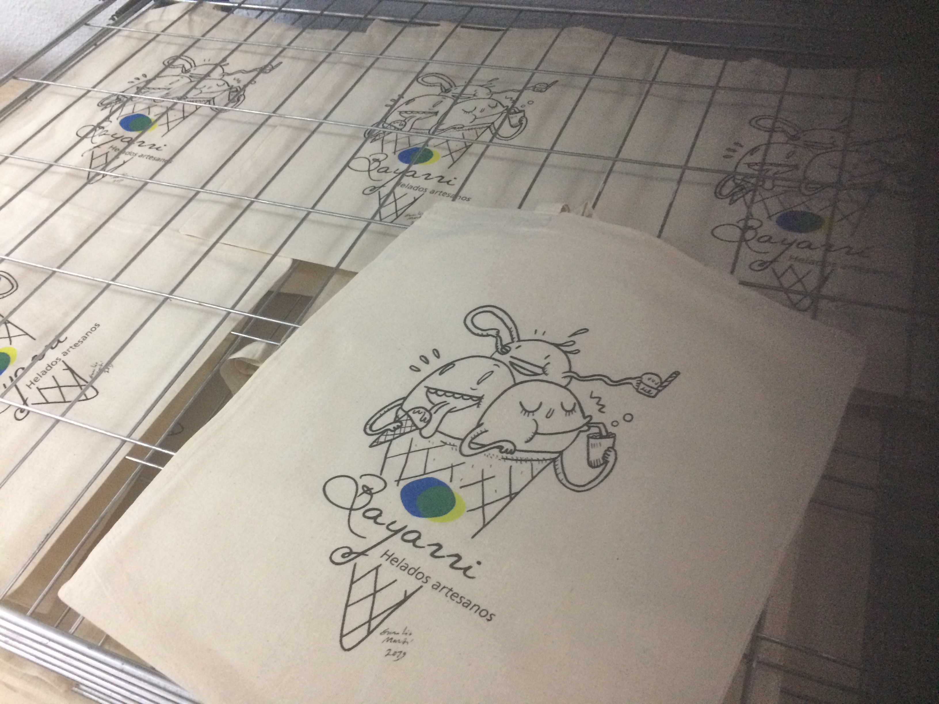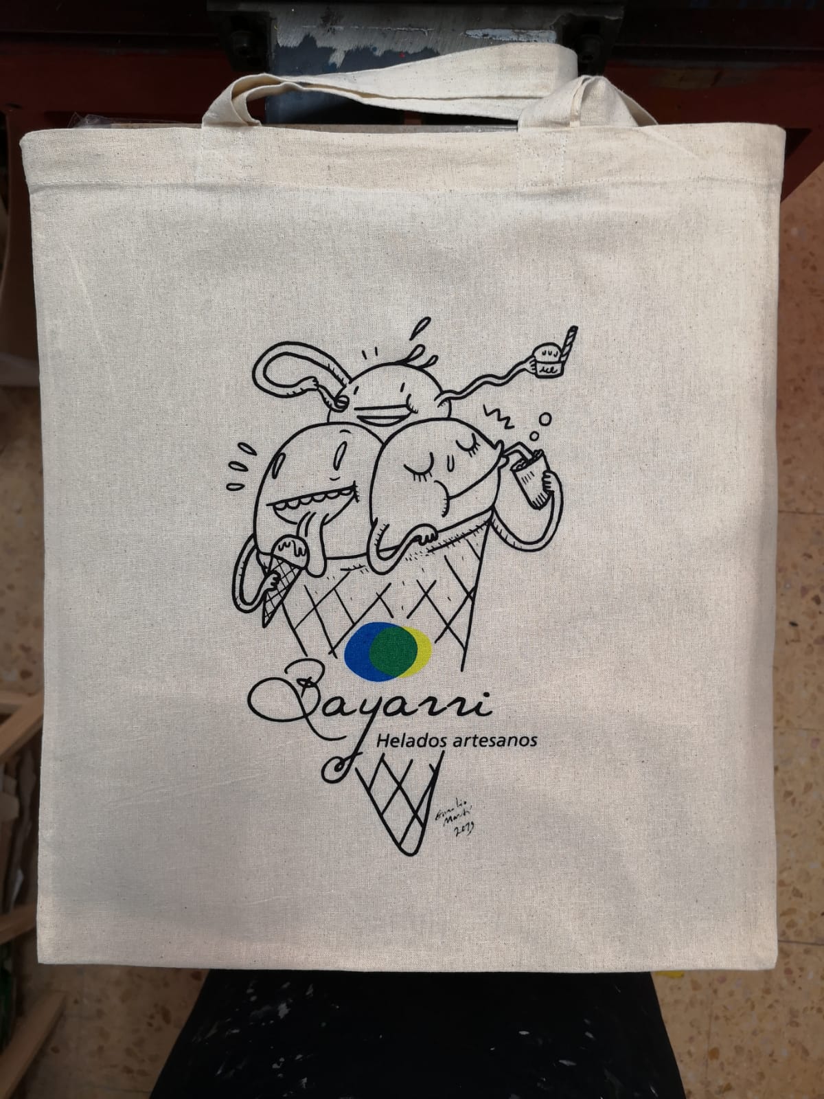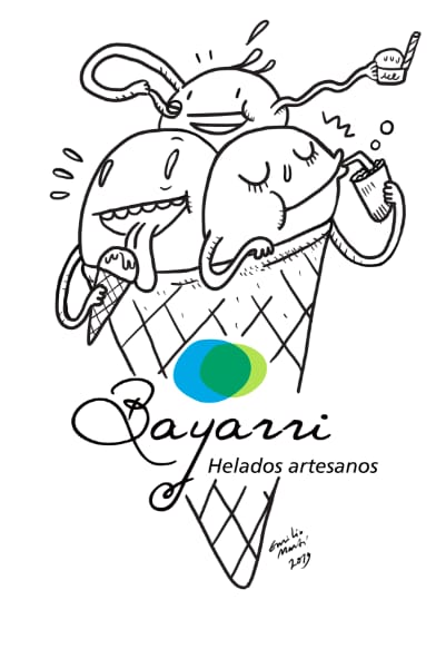 Diseño realizado para las bolsas de colección que la Heladería Artesanal Bayarri imprime cada año, también artesanalmente, en Taller La Maquina.