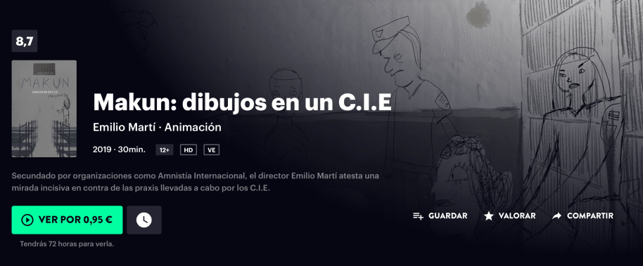 MAKUN FILMIN Previous Publicado 15 febrero, 2021 en 2536 × 1052 en MAKUN (No llores) – Dibujos en un C.I.E. (2019) Makun en Filmin (https://www.filmin.es/corto/makun-dibujos-en-un-cie) Me gusta Cargando...