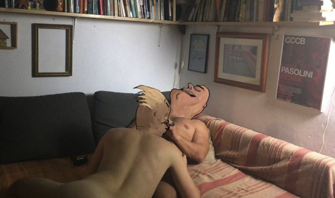 La serie “Sofá” está hecha expresamente para Museari, pero parte de una investigación de hace varios años. Combina la (escasa) intersección entre animación –un arte ligado a la infancia y por tanto clave en la educación sentimental- y las cuestiones LGTBi. Recoge la grabación de los encuentros románticos entre el artista y su pareja. Se improvisan escenas que incluyen el juego y el desenfado (elementos que relacionamos con la animación). El corto Desanimado, sobre la búsqueda de la identidad propia, es uno de los primeros trabajos en esta línea.
