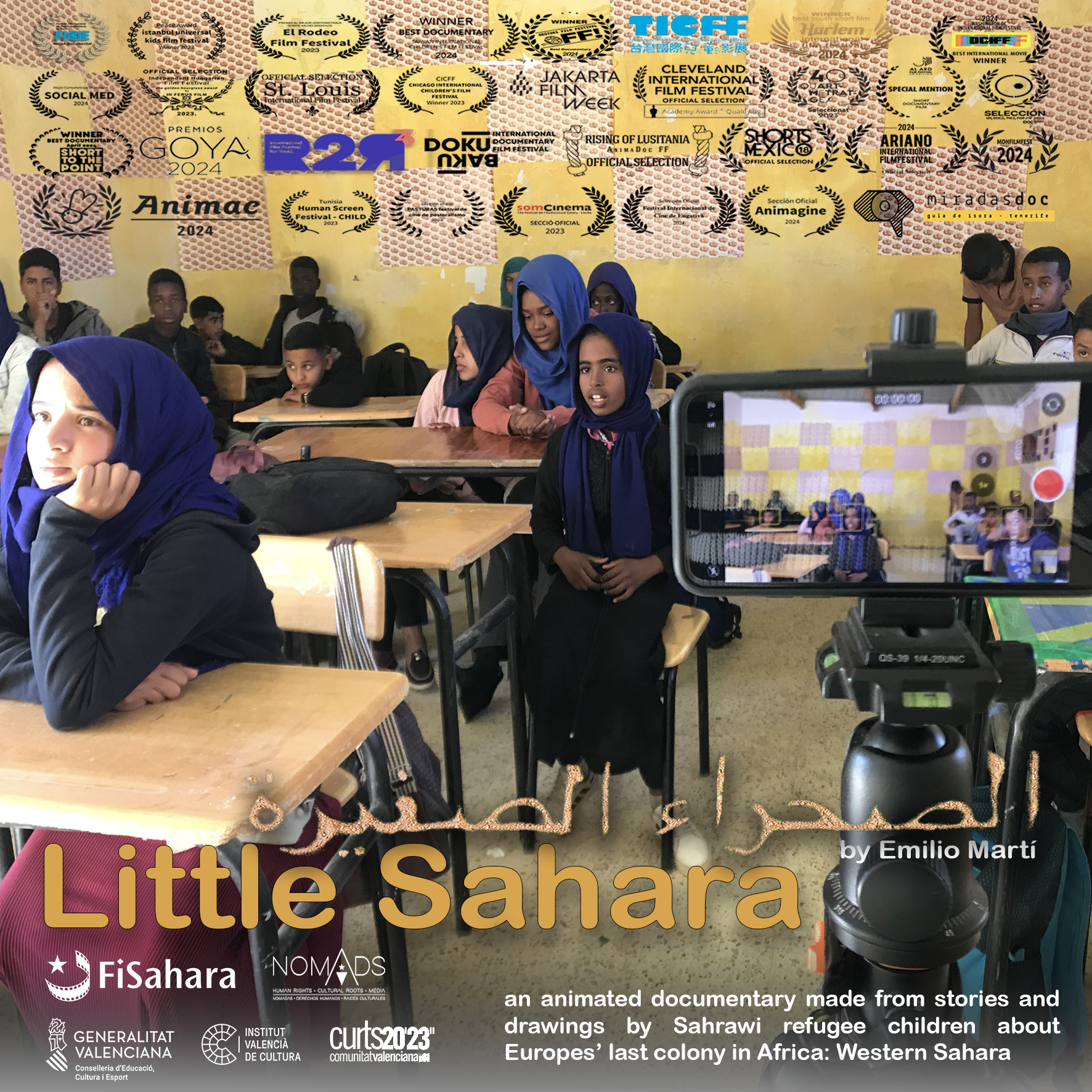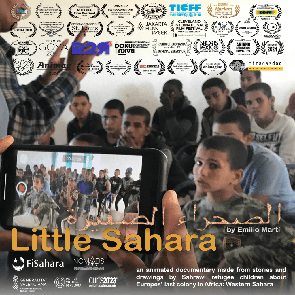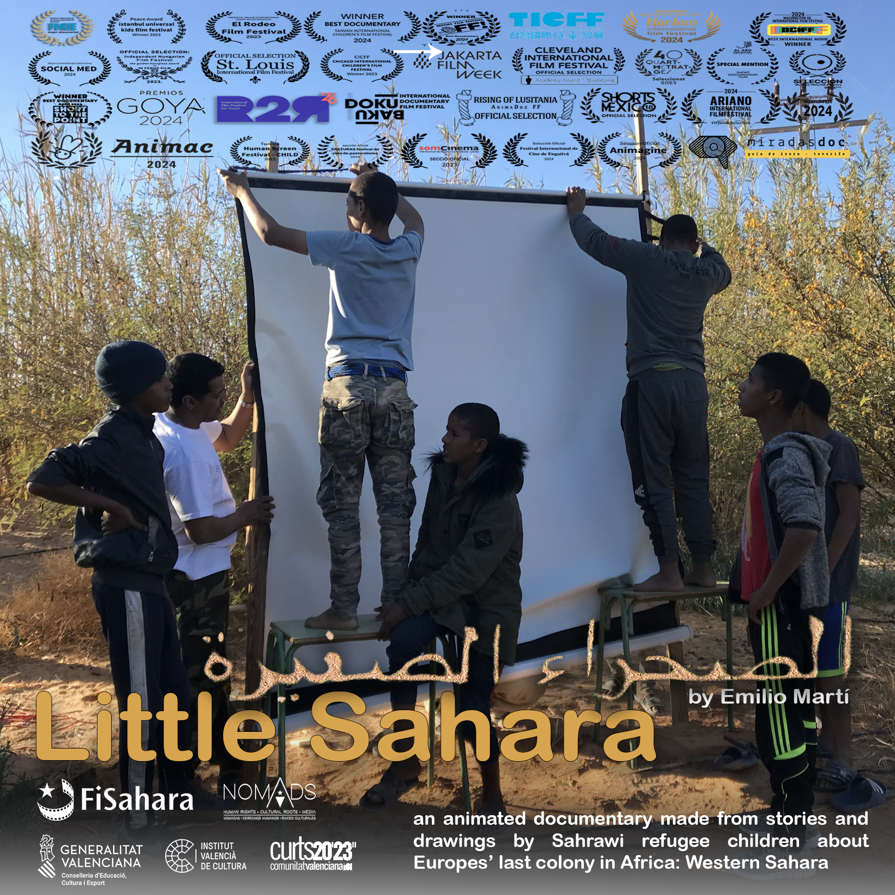 la juventud saharaui apenas ha salido de los campos de refugio en los que Argelia les permite vivir, en lo más duro del desierto (la hamada). España tiene pendiente desde los 60 la descolonización de Sáhara Occidental: es la última colonia europea oficial que queda en África y que esté ocupada no es óbice para que desde la Moncloa se asuman responsabilidades y se gestione el traspaso del territorio a les saharauis. Pedro Sánchez Pérez-Castejón debe atender a la petición de United Nations y decolonizar el Sáhara; reconocer el territorio que le otorgó la Asamblea General hace 50 años y denunciar el incumplimiento de los Derechos Humanos por parte de Marruecos, potencia ocupante del Sáhara Occidental (España es la potencia administrativa). Gracias a Harlem International Film Festival por el premio y a quienes nos ayudaron a realizar el documental, sobre todo a los jóvenes saharauis que ponen imágenes y testimonio a la peli; a Nomads HRC, FiSahara y Tiba Sidihaiba por presentárnoslos y facilitar los talleres que iniciaron #LITTLESÁHARA; a Arturo Arias por el sonido de la peli; y a la Filmoteca valenciana – IVC GVA (con Irene Kubs Cubells) por la distri del corto durante 2023.