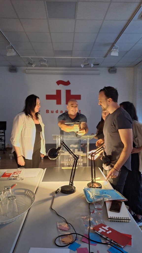 Este es el resultado del taller realizado con adultos en Segovia: llegamos a la idea partiendo del emblemático acueducto romano que cruza la ciudad, y que ya hace casi dos milenios llevaba agua a la misma. ¡Ojalá los Derechos Humanos fluyeran como el agua y su cumplimiento fuera tan transparente como ésta!
