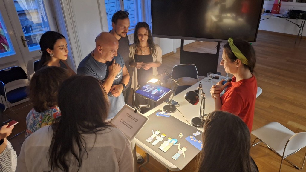 En Valsaín incluimos, en el taller, la proyección de MARHABA: les participantes quedaron impresionadas por la narración de la vida y viaje de Mohammed, y muchas de las animaciones que inventaron a continuación tocaban temas similares: el derecho a la paz y a la seguridad, así como a la vida, mediante los derechos humanos a emigrar, al asilo y el refugio; otros dos grupos hicieron sendas películas sobre los abusos y malos tratos en el entorno escolar (el bullying) y cómo pueden resolverse; y las personas más pequeñas del taller (¡5 añitos!) nos relataron cómo un grupo de peques como elles se asustan por la llegada de una gigante, a quien (¡casi inmediatamente!) integran en sus juegos y sus vidas. Estas son las películas hechas en la escuela: