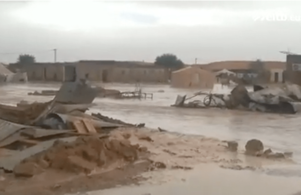 Y es que los «refugiados» y «refugiadas» saharauis, que tuvieron que huir de la colonia española que todavía es el Sáhara Occidental cuando Marruecos la invadió, vienen sufriendo inundaciones muy graves en el trozo del Sáhara en el que están recluidas: la última fue este otoño.