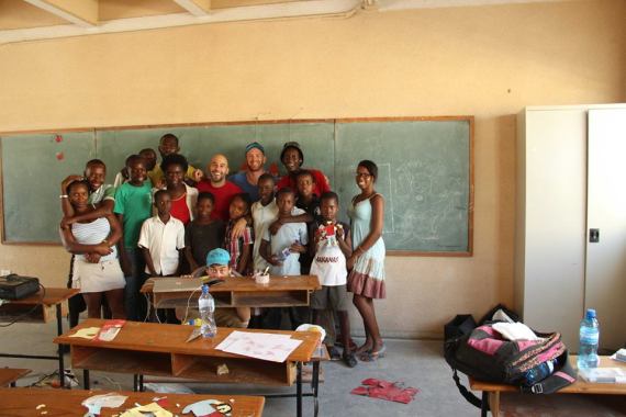 Con el equipo de producción, Angie, Anne, Patchely, Kerline y Joulivert, las chicas y chicos de la escuela, Mario Torrecillas y Abel del Castillo